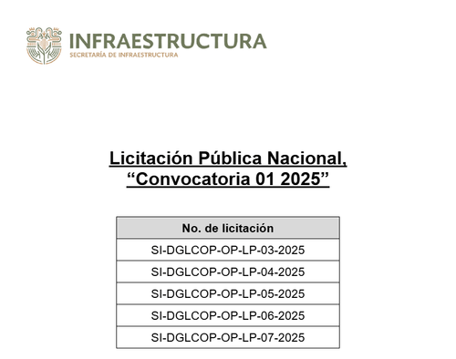 De conformidad con el artículo 28 de la Ley de Obra Pública y Servicios Relacionados con la Misma del Estado de Morelos, se convoca a los interesados a participar en la Licitación Pública Nacional, cuya Convocatoria que contiene las bases de participación se encuentra disponible para su consulta y obtención en las oficinas de la Dirección General de Licitaciones y Contratación de Obra Pública, ubicada en Av. Universidad Número 25, Colonia Chamilpa, C.P. 62130, Cuernavaca, Morelos, en un horario de 09:00 a 15:00 hrs., desde el día de la publicación de la presente y hasta el sexto día natural previo al acto de presentación y apertura de proposiciones Técnicas.