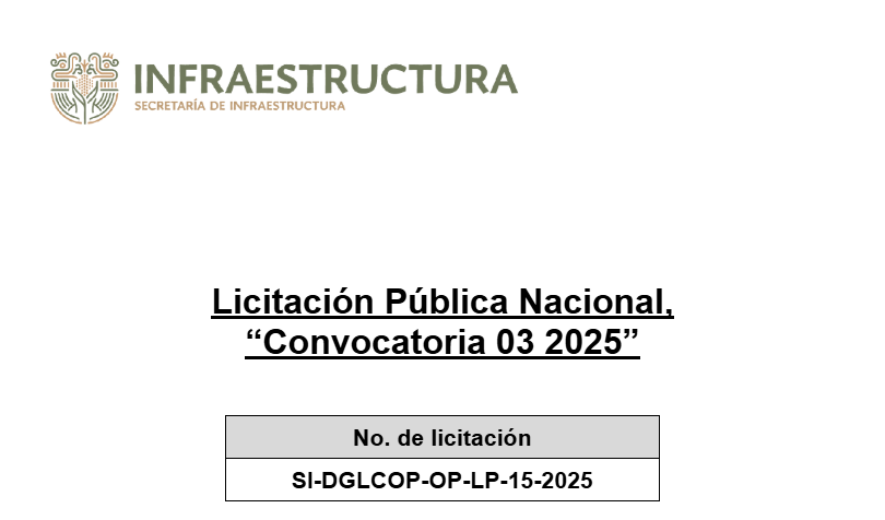 De conformidad con el artículo 28 de la Ley de Obra Pública y Servicios Relacionados con la Misma del Estado de Morelos, se convoca a los interesados a participar en la Licitación Pública Nacional, cuya Convocatoria que contiene las bases de participación se encuentra disponible para su consulta y obtención en las oficinas de la Dirección General de Licitaciones y Contratación de Obra Pública, ubicada en Av. Universidad Número 25, Colonia Chamilpa, C.P. 62130, Cuernavaca, Morelos, en un horario de 09:00 a 15:00 hrs., desde el día de la publicación de la presente y hasta el sexto día natural previo al acto de presentación y apertura de proposiciones Técnicas.