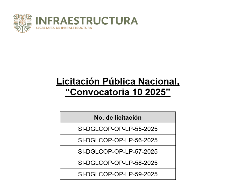 No. de licitación: SI-DGLCOP-OP-LP-56-2025