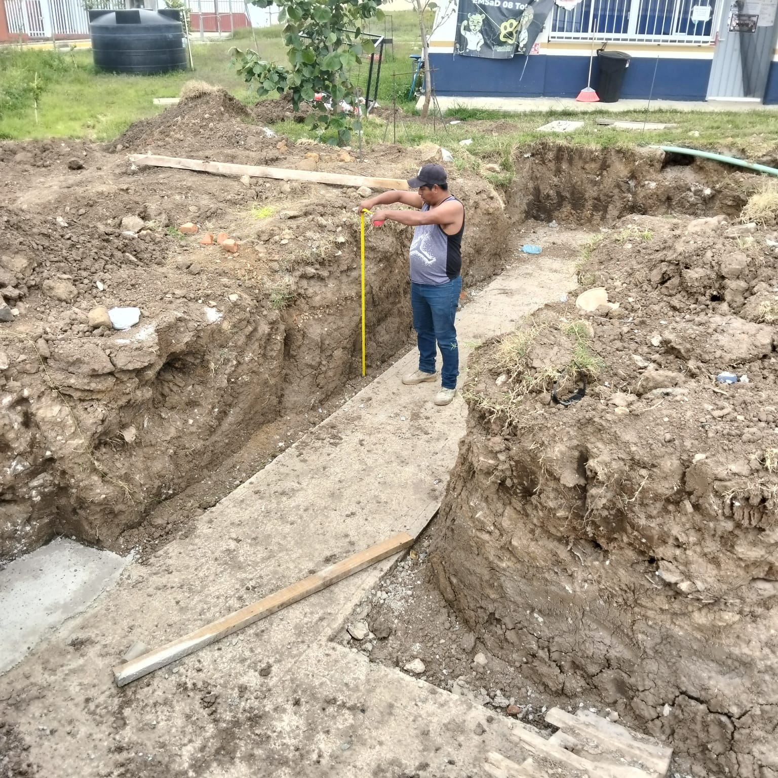 Construcción de módulos sanitarios y obras complementarias. Los trabajos consisten en: Preeliminiares, cimentación, estructura, albañileria y acabados, herreria y canceleria, instalación eléctrica, instalación sanitaria, instalación hidraulica y muebles de baño.