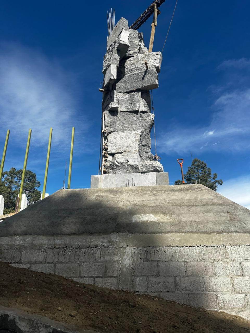 Se realizará la Colocación del monumento José Maria Morelos y Pavón, realizando los siguientes trabajos: Manta informativa de obra en ejecución 1pza, Suministro y colocación de placa de Resina color bronce 1pza, Desmontaje de luminarias de diferentes medidas sin recuperación 14pzas, Limpieza de piso de adoquin existente 1,800m2, Demolición de piso o muros de concreto o mamposteria 19m3, Excavación por medios mecánicos de 0.00 a 3.00 m. de profundidad 16m3, Relleno con material producto de excavación 12m3, Plantilla de 5 cm. de espesor para desplante 24m2, Acero de refuerzo en cualquier diámetro, para zapata 1700kg, Concreto premezclado o hecho en obra en zapata, clase I, f'c=250 kg/cm2 8.5m3, Muro de mamposteria de piedra braza 25.6m3, Suministro y colocación de cantera gris 64m2, Suministro y colocación de monten en caja 17pzas, Aplanado fino con Estuco o uniplast 240m2, Suministro y aplicación de pintura vin�lica 980m2, Suministro e instalación de luminaria led solar 8pzas, Suministro e instalación de brazo metálico extensible 8pzas, Limpieza fina al final de la obra 1800m2, Monumento de José Maria Morelos y Pavón a base de piedra volcánica (alabastro negro) esculpido por personal acreditado 1 pza.