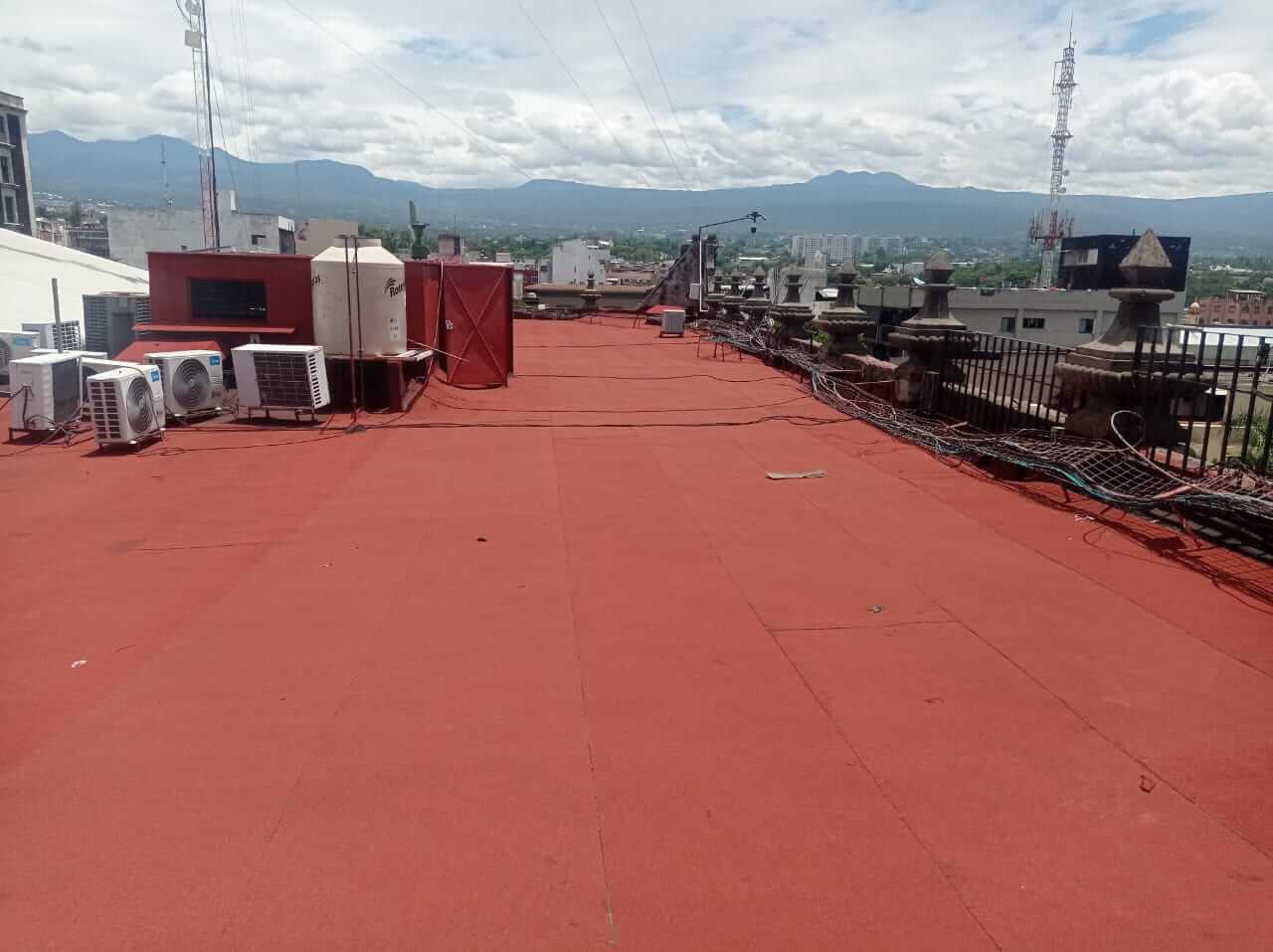 El proyecto contempla las siguientes actividades: Suministro y colocación de impermeabilizante en azotea, cubriendo una superficie total de 2,667.28 m2; Suministro y colocación de impermeabilizante en muros, en una superficie de 175.60 m2; Fabricación e instalación de 27 bases de herreria, con dimensiones que varian de 0.45 a 0.55 m de ancho y de 0.90 a 1.10 m de largo, construidas con perfiles comerciales de ángulo de 1/2" y solera plana de 1/2" @ 15 cm, con patas de 20 cm y placa de apoyo para fijación en losa; Suministro e instalación de dos equipos de aire acondicionado tipo mini Split de 2 toneladas (24,000 BTU), marca York o similar, 220V, R-410, con tuberia Conduit de pared delgada de 19 mm, tendido de 20 metros y cableado con dos hilos calibre 10 y uno para tierra fisica calibre 12; Adicionalmente, el proyecto incluye la reubicación de 27 unidades de aire acondicionado actualmente instaladas en la azotea del Palacio de Gobierno, con el propósito de liberar el área para la correcta ejecución de los trabajos de impermeabilización. Asimismo, se contempla la adquisición e instalación de dos nuevos equipos de aire acondicionado para la Secretaria de Infraestructura.