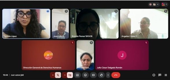 En dicha reunión participaron: Daniela López Trujano, directora de Desarrollo de Programas; Brenda Flores García, subdirectora de Área; y Ángeles Ivette Salas Domínguez, analista de Enlace Interinstitucional, todas adscritas a la Secretaría de Gobernación.
